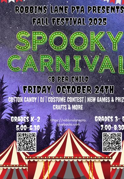 Get ready for a spooktacular time at the Robbins Lane Annual Fall Festival - Friday 10/24!