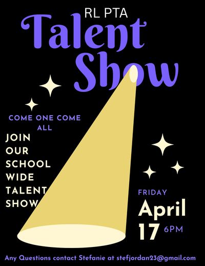 The Robbins Lane Talent Show is coming up. All grades are welcome to participate in acts whether it be singing, dancing, playing an instrument, comedy, magic, etc. We are not allowing gymnastics due to the potential risk of injury. Please limit acts to around 3 minutes long.